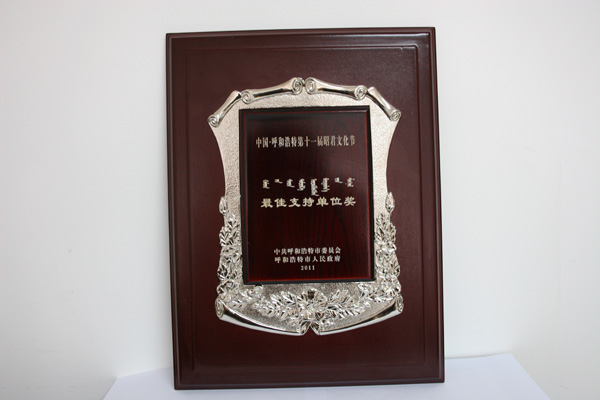 中國·呼和浩特第十一屆昭君文化節最佳支持單位獎