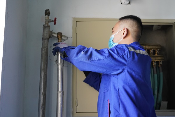 工作人員上門后,發現入戶閥門未打開。由于閥門長時間未開啟,工作人員一開啟,熱水一下子噴了出來,打濕了工作人員的衣服。羅阿姨覺得非常抱歉,不停地說,"辛苦了,這么冷的天,厚衣服都濕透了。"