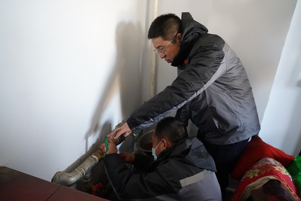 在回訪村中二站南線的路上,一位年近九十的大娘著急地朝我們走來(lái)。她說(shuō):"到我家看看吧,暖氣不熱。"工作人員跟隨老人來(lái)到其家中。大娘家為小南房,大約20平米左右,四面漏風(fēng),她的老伴身著棉衣盤腿坐在炕上。工作人員開(kāi)始進(jìn)行排氣、調(diào)節(jié)閥門、檢查過(guò)濾器,最后排查發(fā)現(xiàn)管道內(nèi)有異物堵塞,經(jīng)過(guò)排污,大娘家中的暖氣逐漸升溫。大爺激動(dòng)地說(shuō):"你們給我修暖氣,忙的連口水也沒(méi)喝,娃娃們真好!我家院里有李子樹(shù),明年李子熟了,你們過(guò)來(lái)吃。"客服處處長(zhǎng)云躍看著大爺家簡(jiǎn)陋的窗戶,略有所思.....稍后他說(shuō):"我們過(guò)幾天給大爺家安裝棉窗簾和門簾,讓溫暖到位、服務(wù)到位,室溫達(dá)標(biāo),讓老兩口溫暖過(guò)冬。"