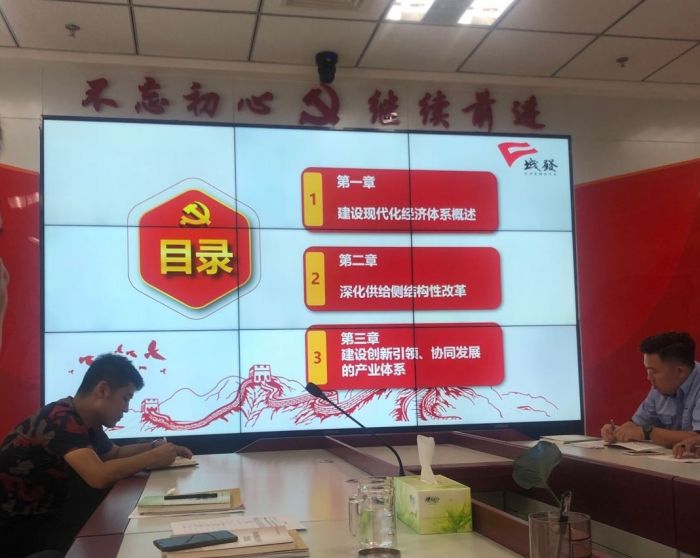 會上,丁雪峰經理和高永峰處長兩位同志根據全國干部培訓材料讀本內容為大家上了一堂精彩的黨課。高永峰同志圍繞“建設現代化經濟體系”主題,分別介紹了體系概況、深化側供給結構性改革,以及建設創新引領、協同發展的產業體系三方面的具體內容。丁雪峰同志,從全面深化改革開啟改革開放新征程的大方向,講解了“將改革進行到底”這一主題的部分內容。